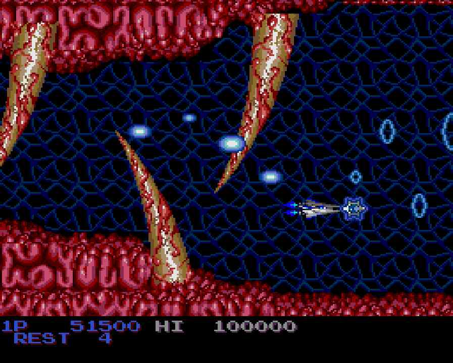 처음 이 게임을 봤을때가 생각난다. 아니 무슨 SF슈팅에 뭔놈의 뼈다귀가 나오질 않나, 뭔 세포덩어리가 나오질 않나... 이런 어울리지않는 조화의 슈팅게임이라니...