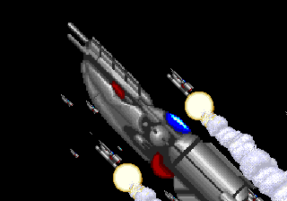 먼저 게임을 시작하고 좀 진행하다보면, 저런 큰 항공모함같은것이 추락하는 장면이 배경으로 나오는데... 저게 3D가 아니고 한땀한땀 그린 2D라는 사실.. 참... 눈물없인 못볼 노가다를 누가 했을까 생각하면 만감이 교차하는데, 사실 그것보다 더 큰 충격은 바로 BGM이었다.