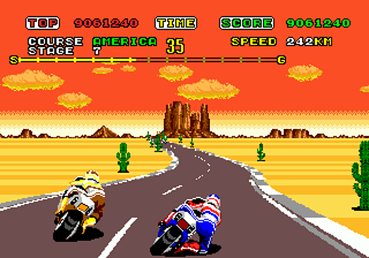 바로 이것... 실제로 오토바이를 타고 조종하는 느낌을 받을수 있는 게임... 슈퍼행온이었다.