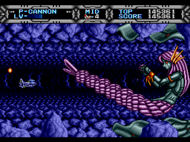 썬더포스3에서도 이런 큰 보스들이 나오긴 했지만, 가이아레스의 보스들은 왠지 썬더포스보다 공간압박이 더 심한 느낌이랄까?