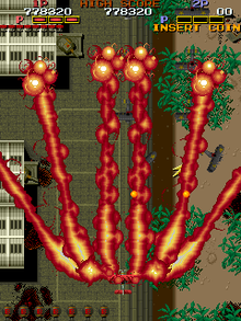 물론, 붉은색 적탄이 잘 안보여 죽기 쉽다는 단점과, 사정거리가 짧다는 취약점, 그리고 가장 문제인것이, 슈팅게임인데 그냥 연타없이 누르고만 있다는것때문에 처음에 한번 써보곤 다시 안쓰게 되는 경향이 있다는게 함정이긴하지만, 처음 이 게임을 봤을때의 그 임팩트는 슈팅게임에서 거의 전무후무했던 수준이었다고 필자는 평가하고 싶다.