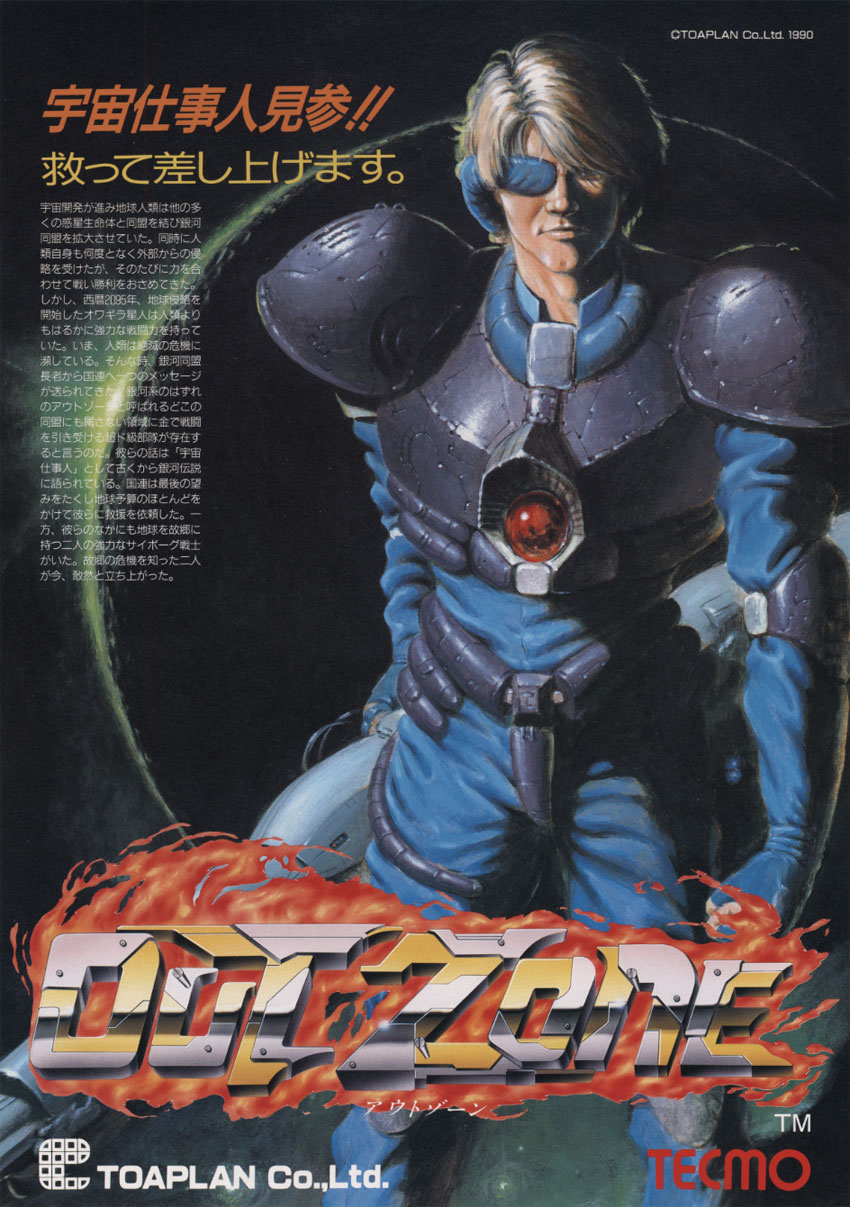 물론, 위급시 필살기로 쓸 폭탄은 제약이 있긴했으나, 코만도스타일의 자유스크롤게임에서 슈팅게임에서나 나올법한 화려한 슈팅무기들을 사용하게끔 시도한것은 필자의 기억으론 이 아웃존이 최초가 아닌가 싶다. (아니면 제보 바람)