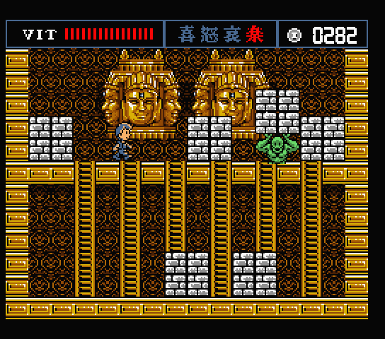 아래와 같은 스테이지 선택 화면에서 각 유적들의 문을 열고 들어가 이루어지는 액션게임인데, 여기서 대단히 참신한 시도가 나오는것이...