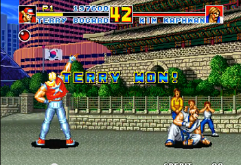 아랑전설... 이 시리즈가 처음 나왔을때.. 필자는 솔직히 이거 어디서 스트리트파이터 아류 하나 나왔네... 했다. 캐릭터도 어디서 이상스런 컨셉들만 가지고 나오고, 움직임도 왠지 부드럽지못한것이... 50원(당시는 1코인이 50원이던 시절...)이 아까울정도였다.