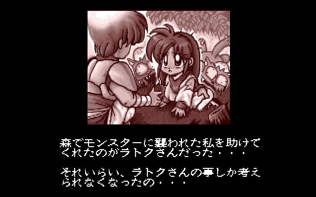 라토크가 좋아하는 동네 소꿉친구 에리스. 이 게임은 프레이의 시각에서 보여지기때문에, 에리스의 이름옆에 "라이벌" 에리스 라고 쓰여진것이 재미있다.
