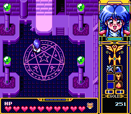 프레이는 우측에 현재 프레이의 상태가 얼굴에 표시된다. 이게 참 당시로선 대단한 아이디어였던것이.. 자그마한 도트캐릭터에서 표현 어려운 감정변화 그래픽을 이렇게 표현해줌으로 보다 현장감있게 전달하는방식.. 처음 접하면서 누가 이런 생각을 해냈는지 감탄했던 기억이 있다.