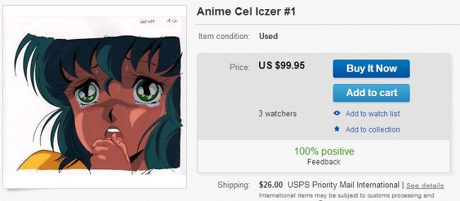 익서원의 매니악한 인기를 반영하듯... 북미에서 익서원의 채색된 원화셀이 이정도 가격에 경매되고 있다.